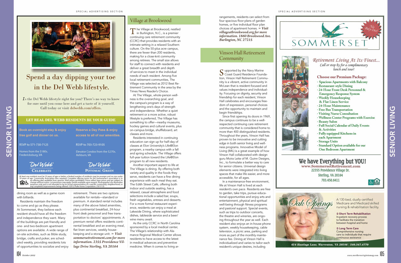 Senior Living Redesign NoVA Magazine, October 2012